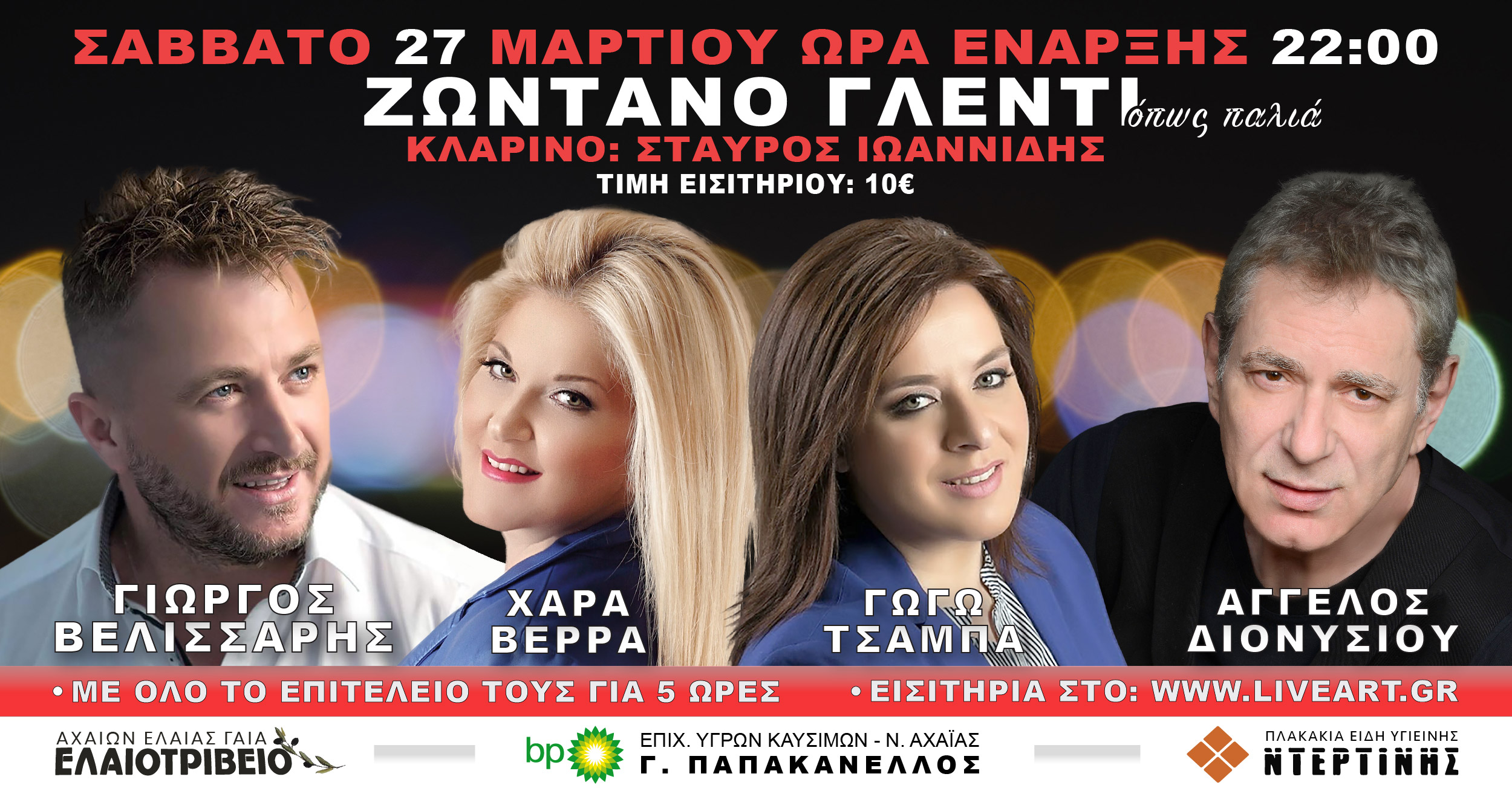 Αναβάλλεται το ζωντανό γλέντι με τους Γιώργο Βελλισάρη, Χαρά Βέρρα, Γωγώ Τσαμπά και Άγγελο Διονυσίου για το Σάββατο 27/03
