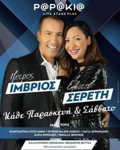 Ο Πέτρος Ίμβριος και η Εβίτα Σερέτη, έχοντας στο πλευρό τους τον Κωνσταντίνα Στογιάννη, τον Σπύρο Νιάχο (guest), την Νάγια Ζορμπάνου, την Κάτια Ρουβάκη και τον Νικόλα Φράγκο, βάζουν στις νύχτες της Αχαϊκής πρωτεύουσας “φωτιά”, από την Πέμπτη 27 Οκτωβρίου και κάθε Παρασκευή και Σάββατο.